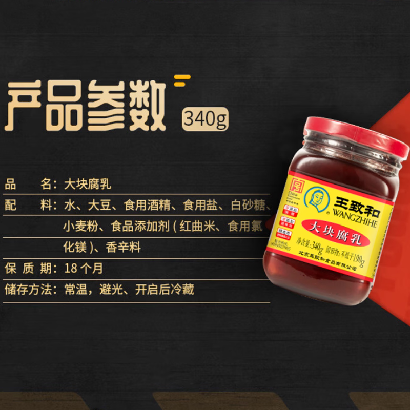 📚 王致和大块腐乳340g火锅蘸料豆腐拌饭拌面中华老字号(新老包装)