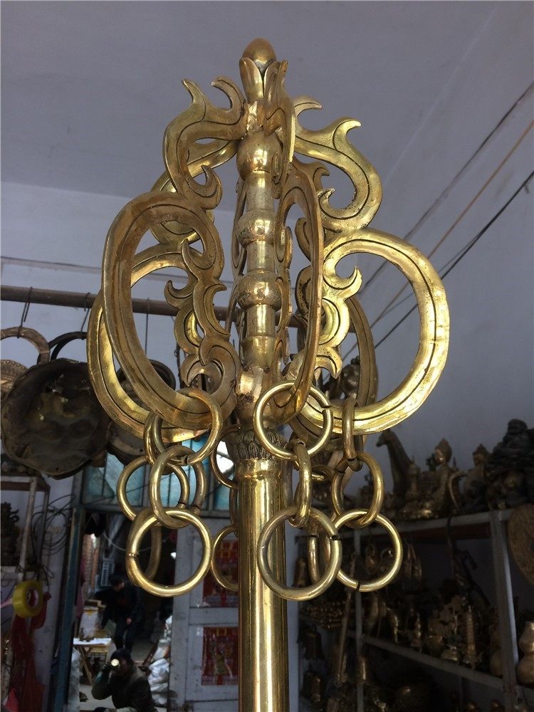 📚 纯铜禅杖摆件 锡杖 玄奘地藏王手杖 铜器工艺品 铜像定制长2米