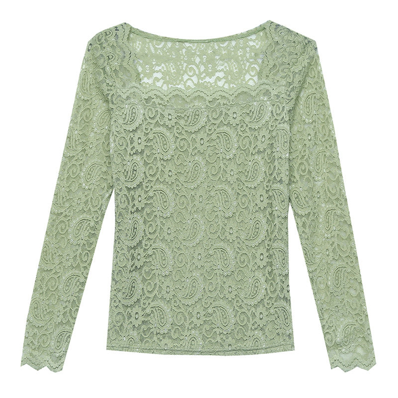 📚 性感方领蕾丝衫女装2026年秋装新款紧身打底衫女长袖内搭洋气上衣