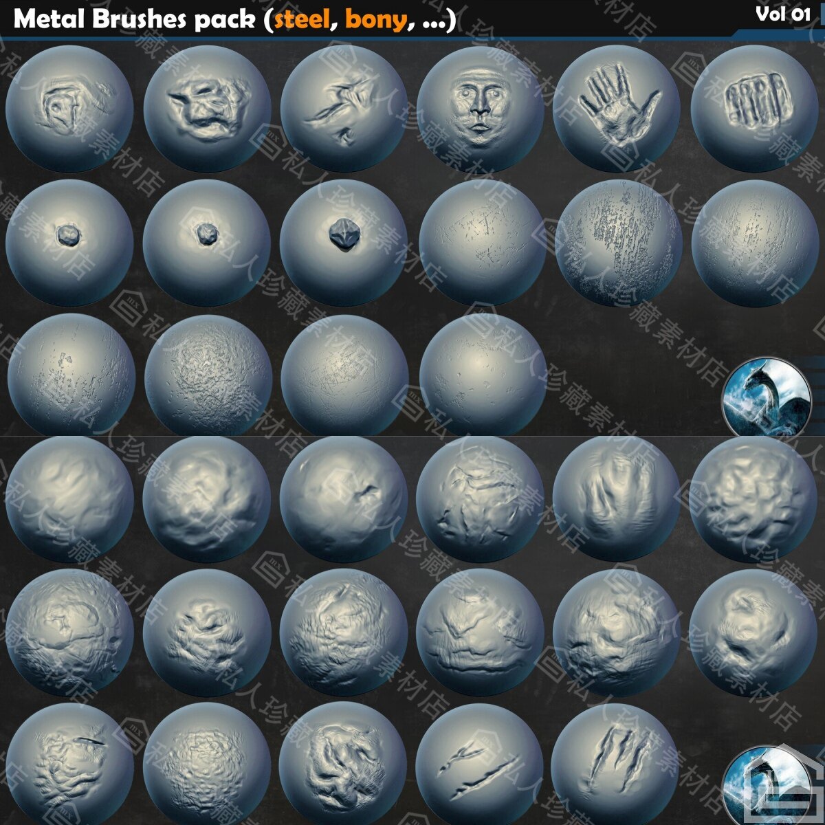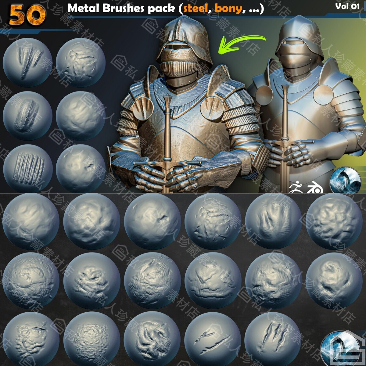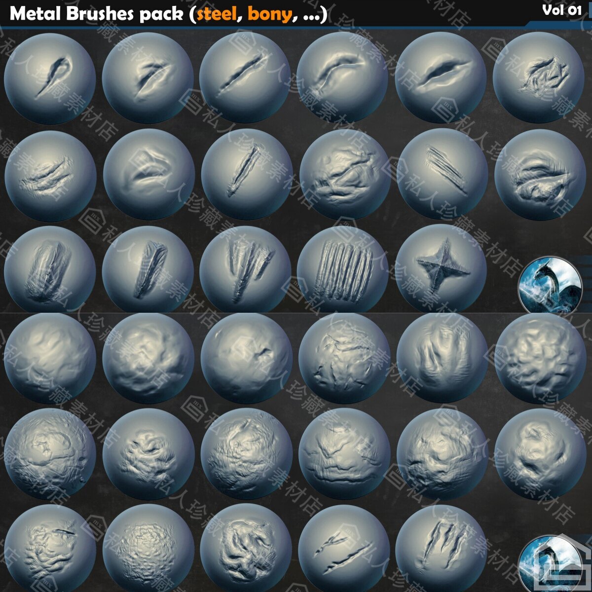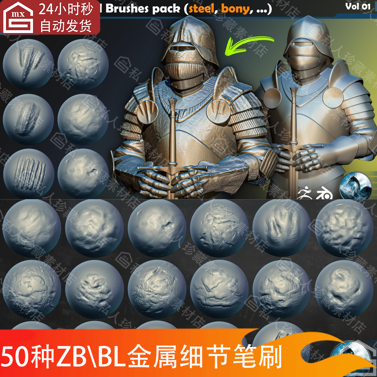 📚 zbrush blender金属盔甲钢铁表面划痕挤压掌印拳印细节ZB雕刻笔刷