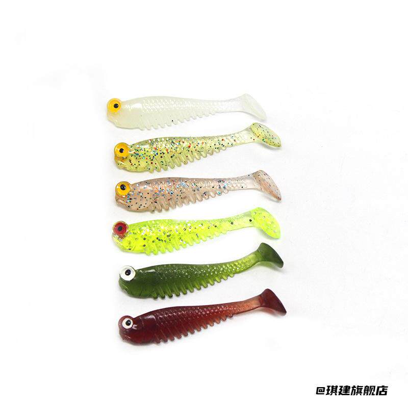 📚 硅胶软假饵仿生软饵夜光鱼饵诱饵渔具5cm假饵软尾t尾侍魂小鱼