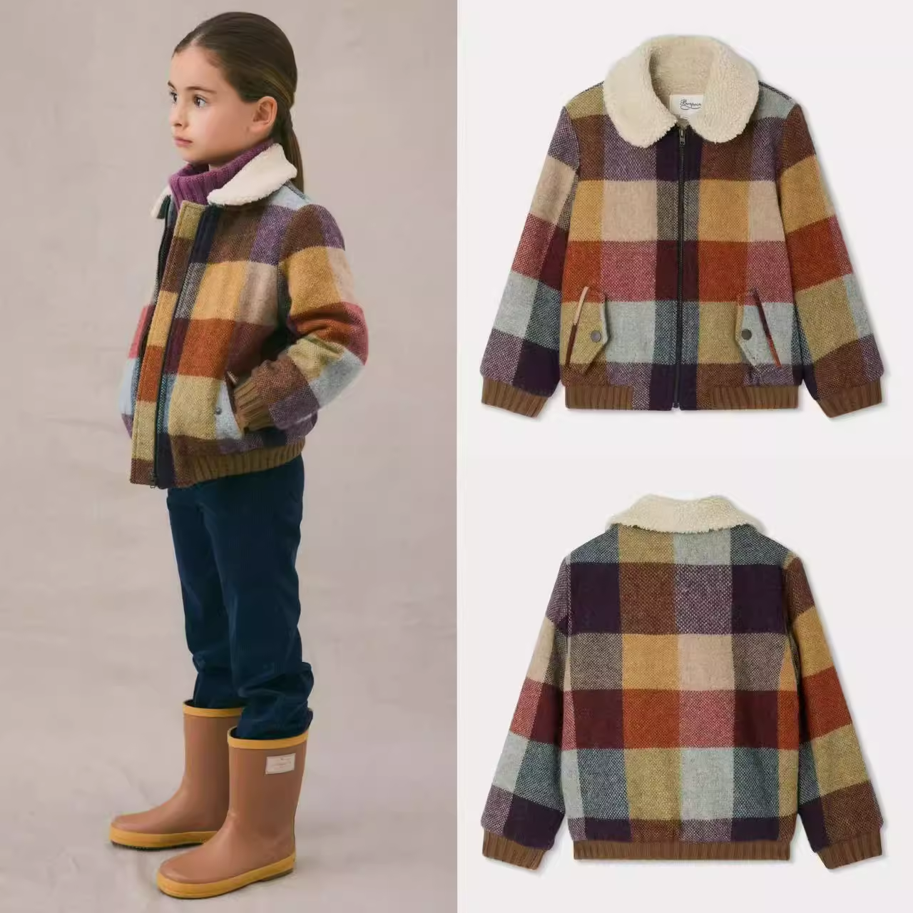 📚 3z现货bonpoint童装24秋冬女童大衣外套保暖风衣单排扣羽绒服棉服