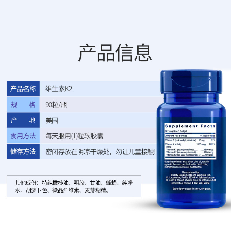 📚 【自营】沿寿LIFE维生素K2中老年MK7骨骼密度k4补钙K7 K1促钙吸收
