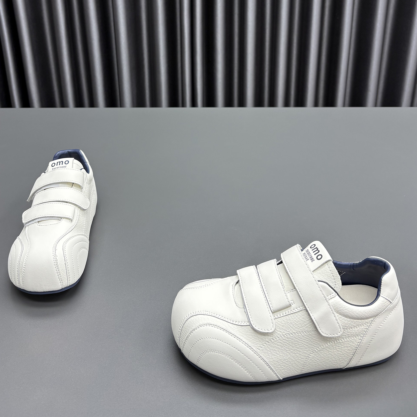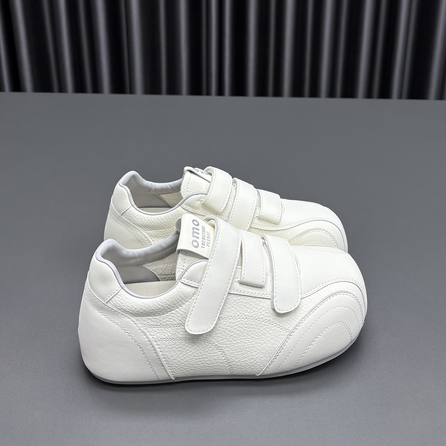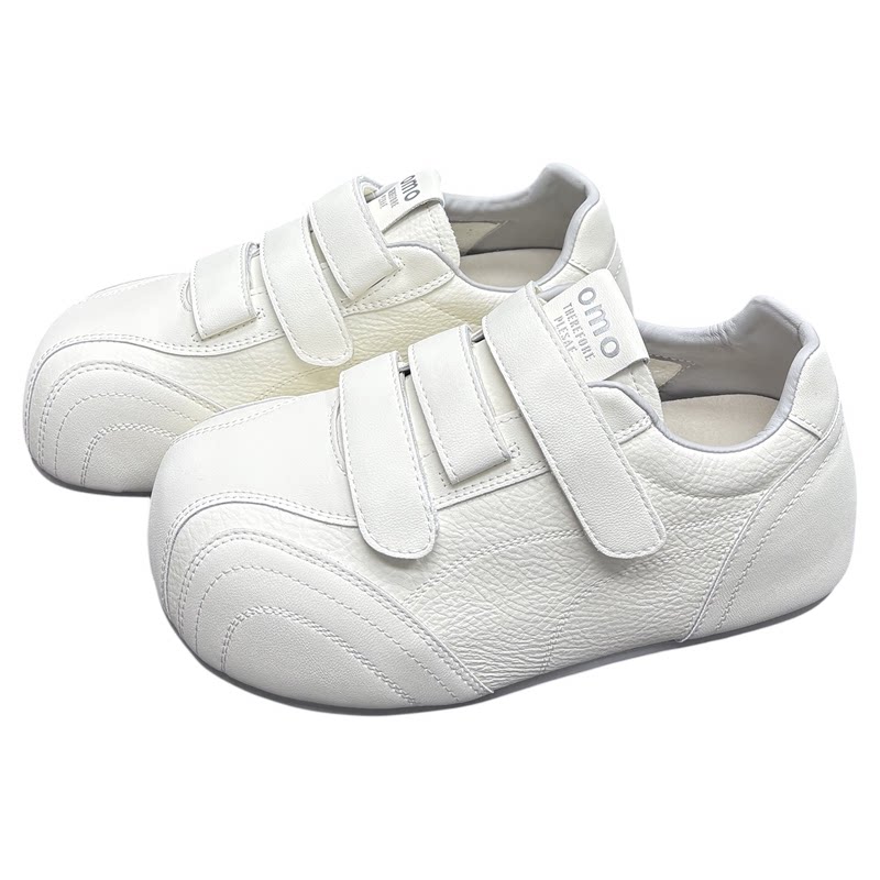 📚 真皮小白鞋女2026春季新款圆头厚底内增高魔术贴牛皮休闲运动板鞋