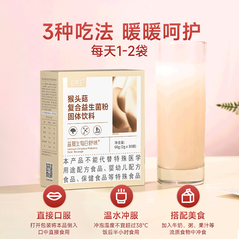 📚 益复生猴头菇复合益生菌粉8种养胃菌株便携即食成人老年肠胃送礼