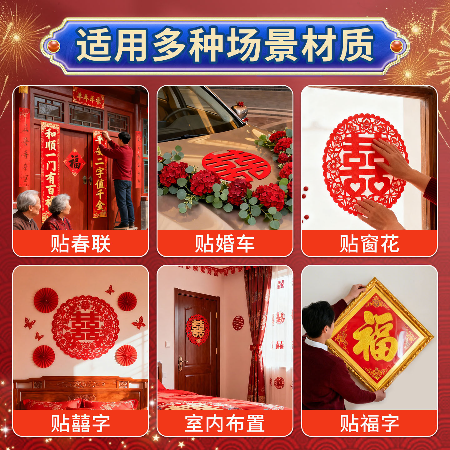 📚 绒布对联专用无痕胶福字喜字长条固定透明无痕贴双面胶带窗花装饰