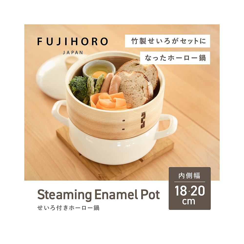 📚 日本直邮富士搪瓷蒸锅带蒸笼18厘米和20厘米适用于电磁炉和燃气灶