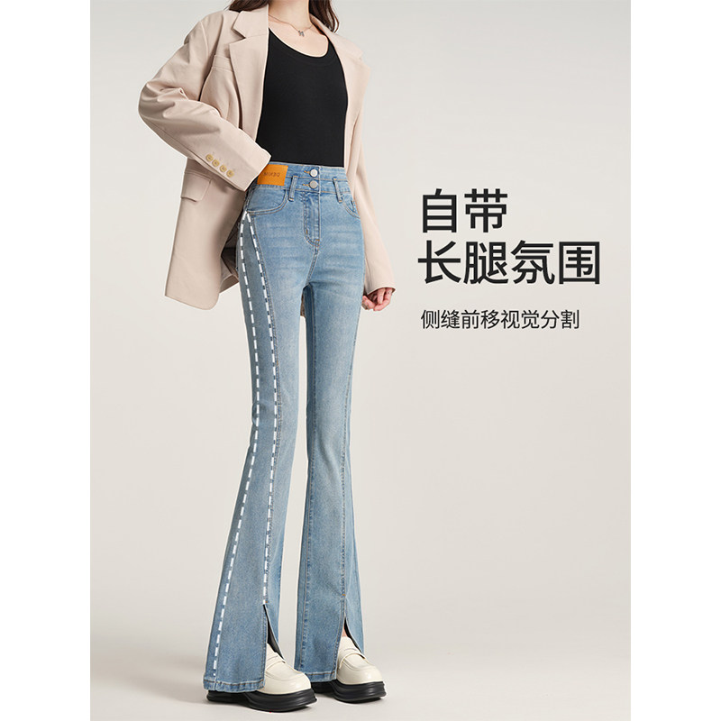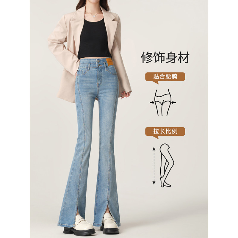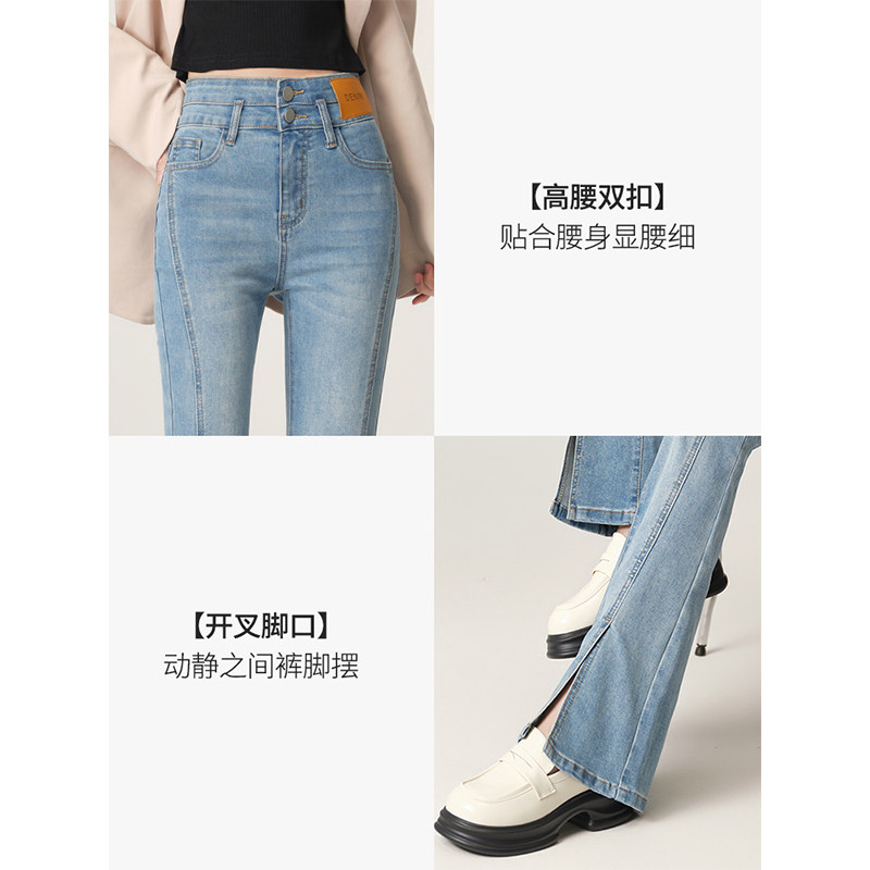 📚 开叉牛仔微喇裤女2026新款冬季加绒加厚高腰马蹄裤复古秋季喇叭裤