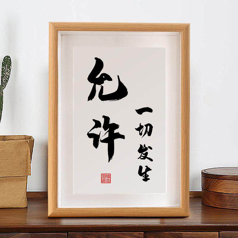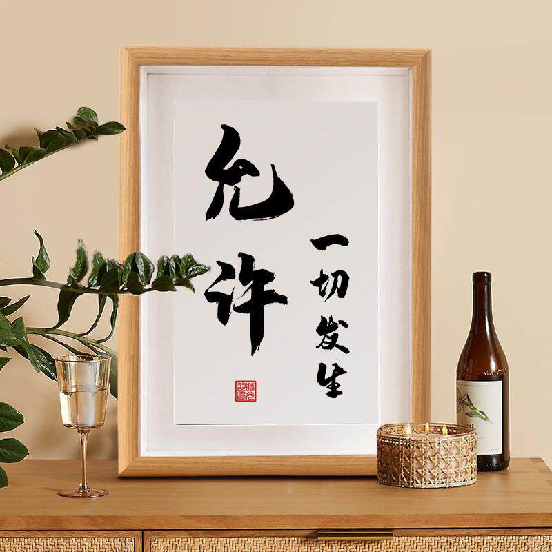 📚 允许一切发生书法摆台控制情绪稳定治愈提醒自己客厅字画摆件挂画