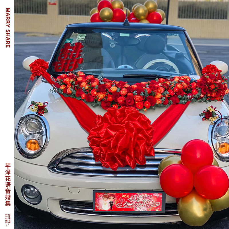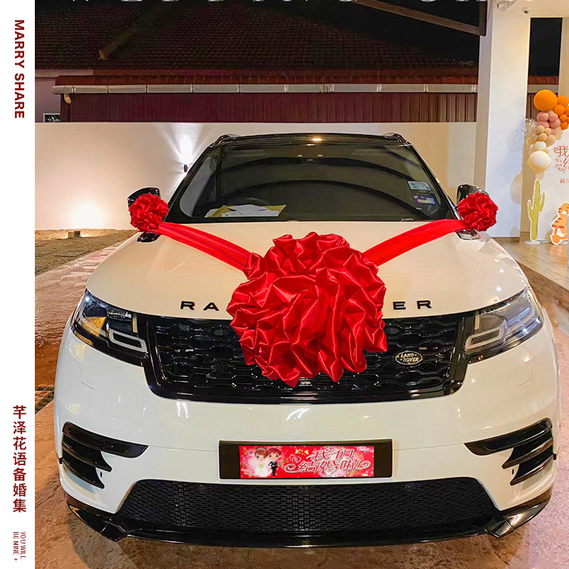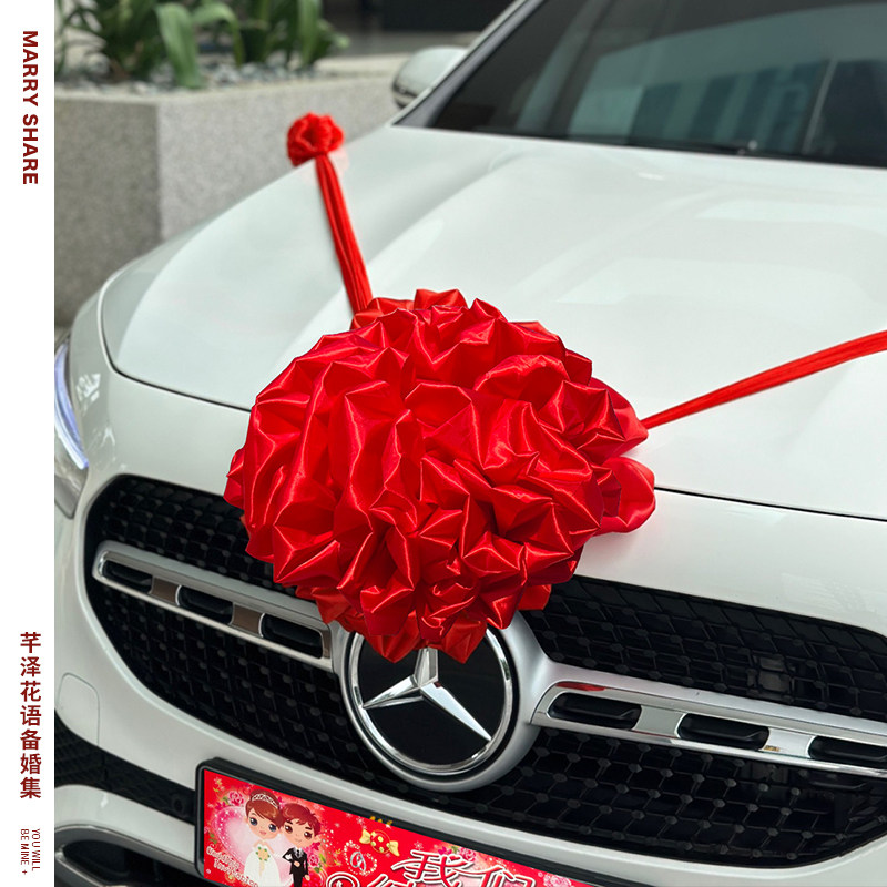 📚 结婚婚车大红花球拉花车队头车花车装饰新车绣球汽车车展提车拉花