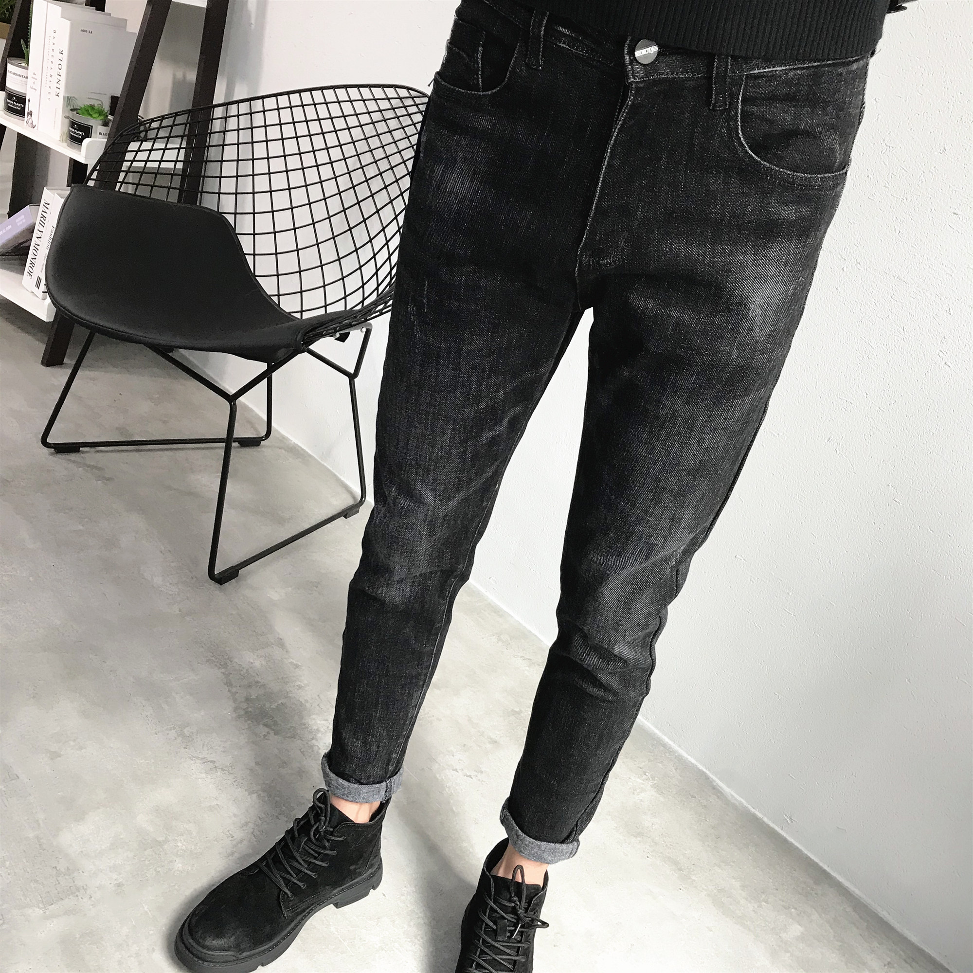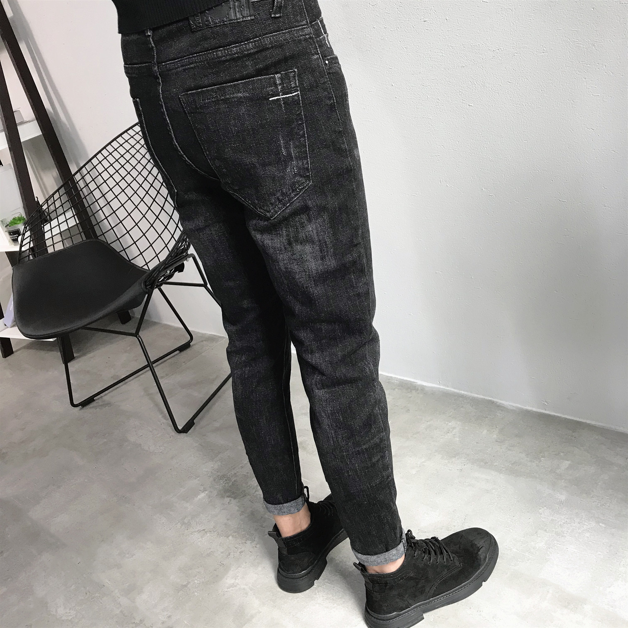 📚 黑色微跨经典百搭修身刺绣猫须小脚牛仔裤男新春夏青年老爹工装裤