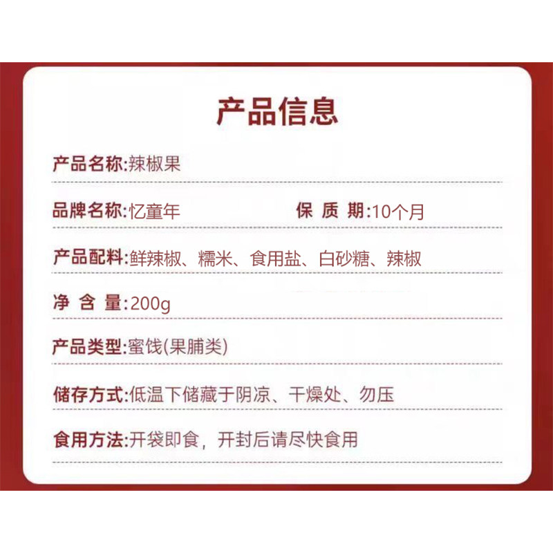 📚 忆童年辣椒果江西特产手工辣椒干糯叽叽辣椒饼零食红椒果南瓜酱