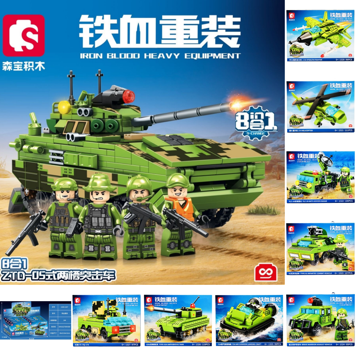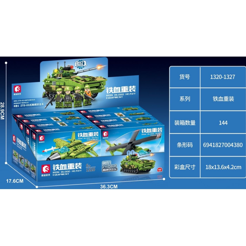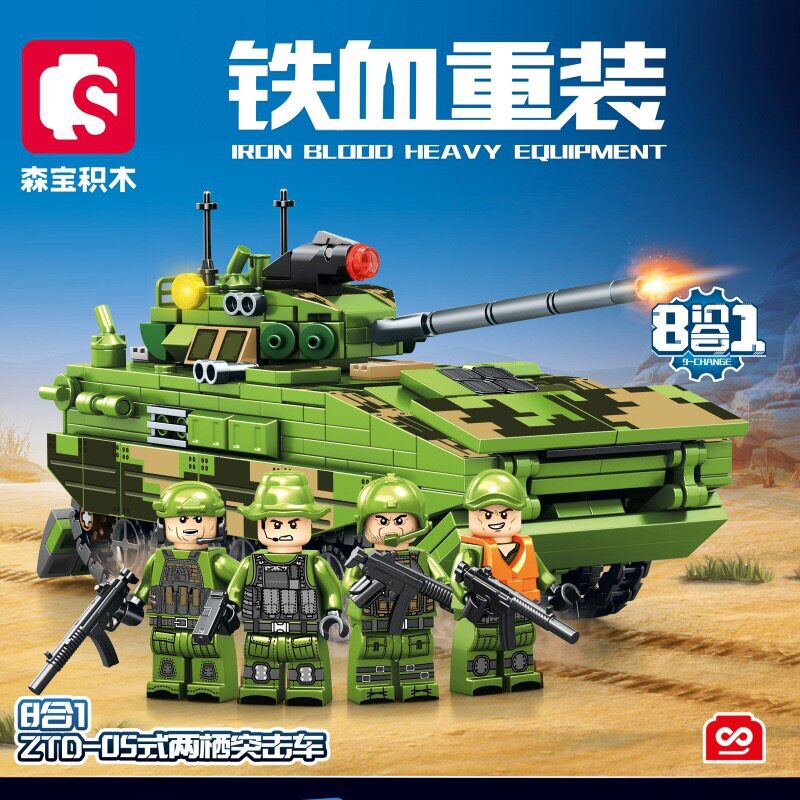 📚 森宝积木铁血重装军事系列8合体ZTD-05式两栖突击车坦克拼装玩具