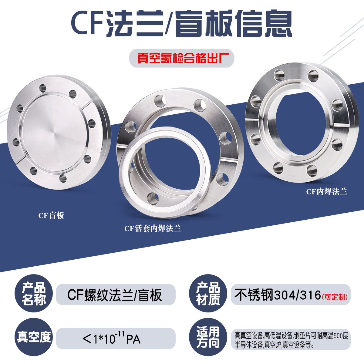 📚 304/316L CF刀口法兰16/25/35/50/63CF内焊真空法兰/松套盲板法兰