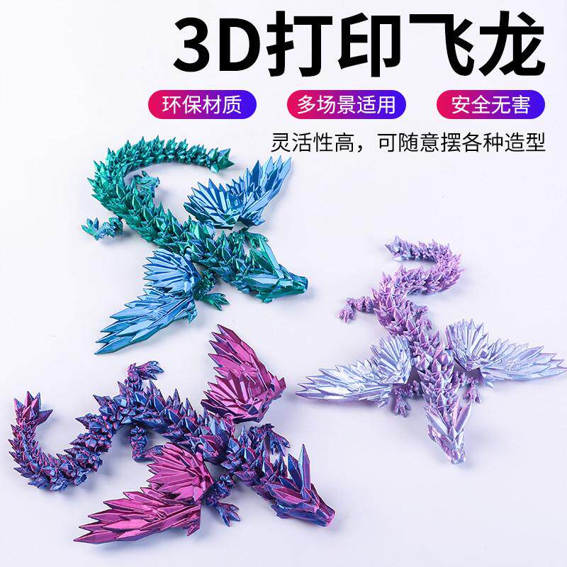 📚 。3d打印水晶飞龙多关节可动带翅膀手办儿童玩具车载摆件男女孩礼