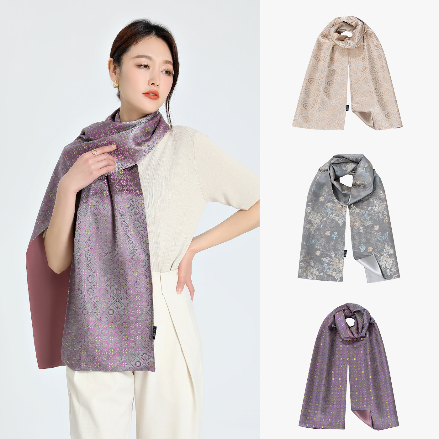 📚 蜀江锦院锦韵新生真丝软缎披肩桑蚕丝蜀锦真丝围巾披肩情人节礼物
