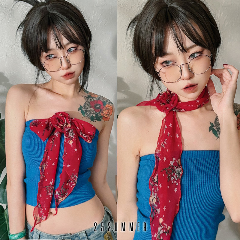 📚 25SUMMER亚文化穿搭复古百搭多用途印花小丝巾choker千禧风配饰女