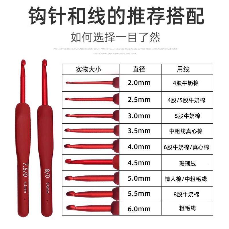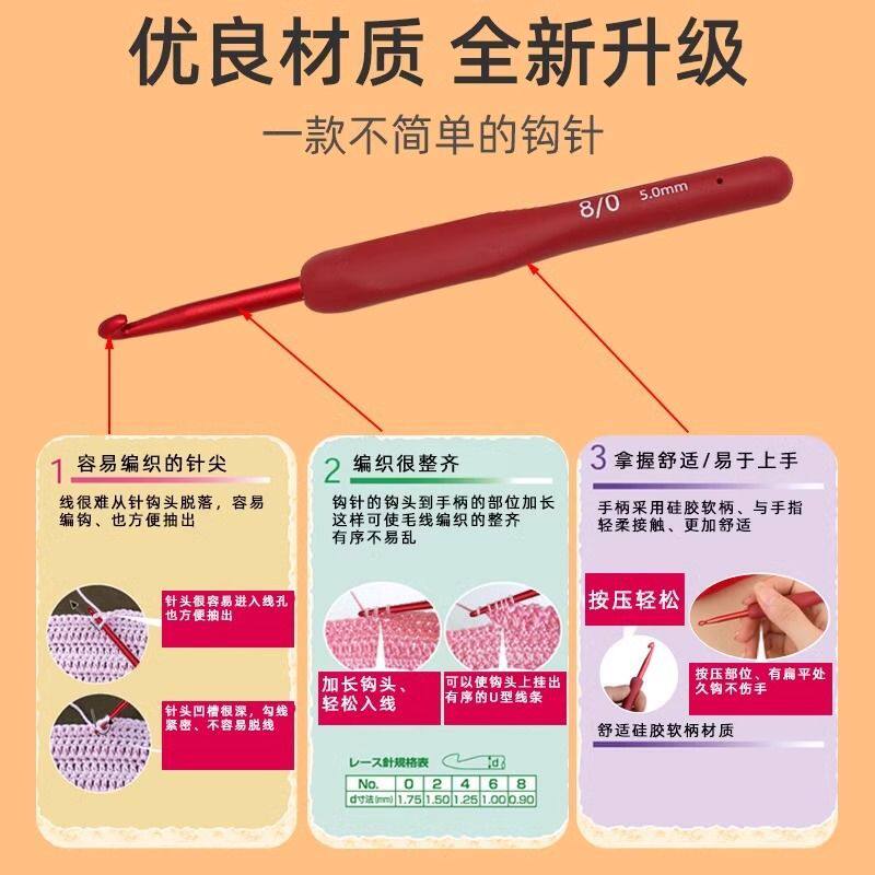 📚 红色硅胶软柄手工钩针工具套装毛线毛衣勾针编织拖鞋儿童围巾手套