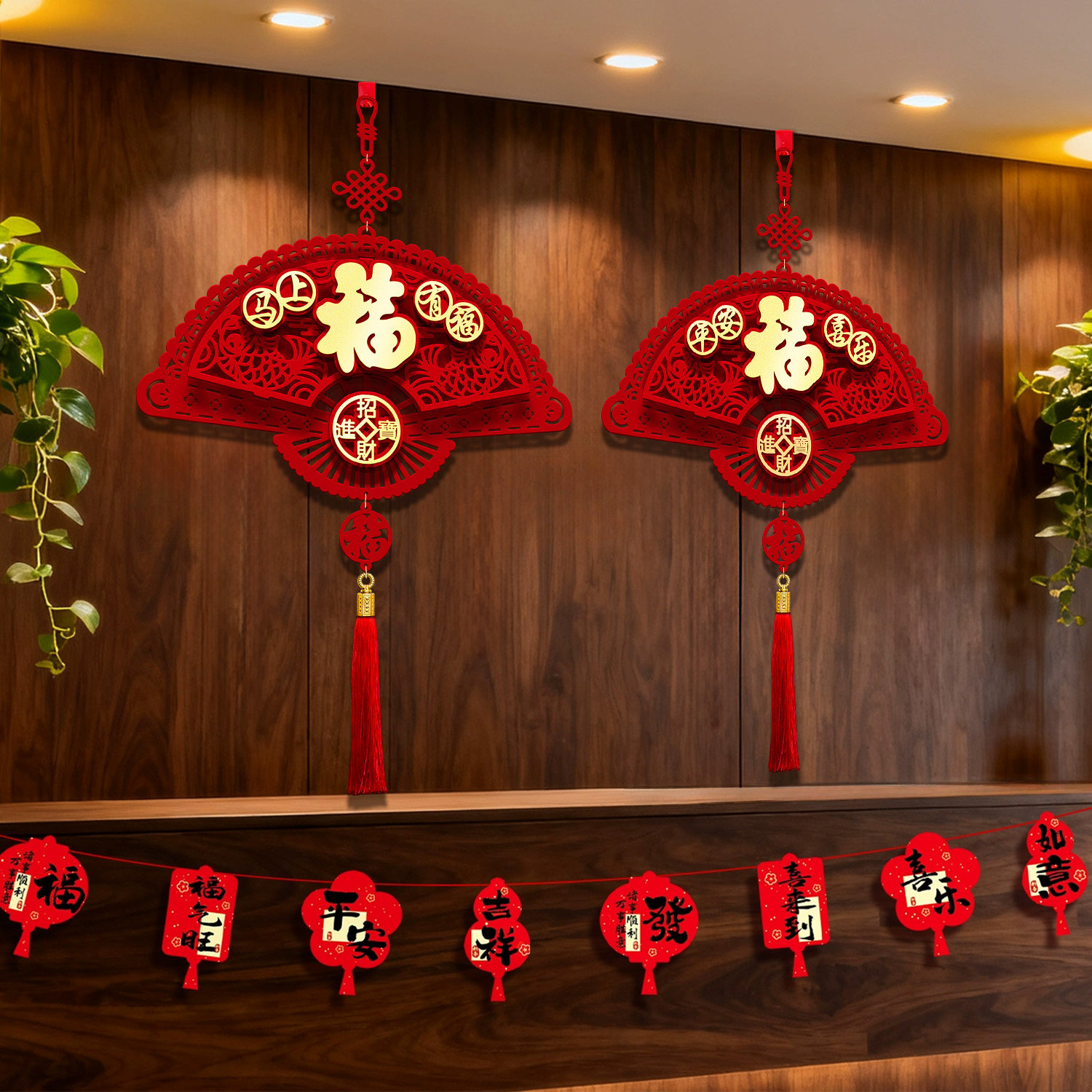 📚 2026马年福字挂饰大门扇花挂饰扇形福字挂件客厅春节过年新年装饰