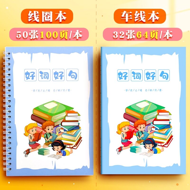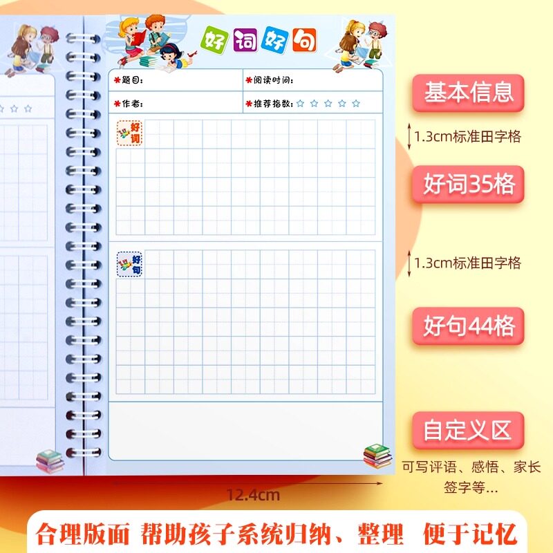 📚 好词好句摘抄本读书记录本小学生儿童日积月累一年级二年级儿童田字格读后感笔记本子a5线圈阅读记录卡积累本