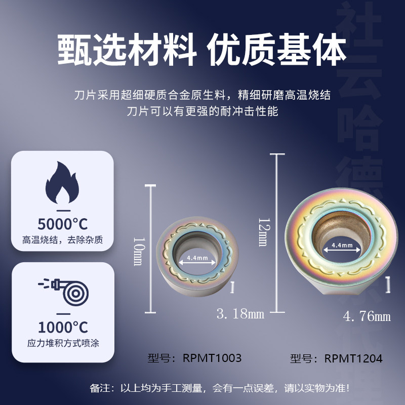 📚 数控铣刀片R5/R6硬质合金RPMT1003MO-SY/1204圆刀片软钢硬料高硬