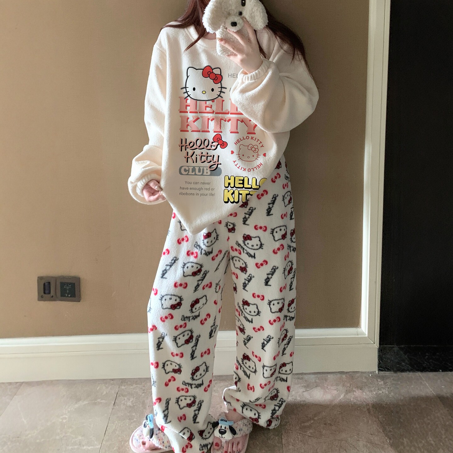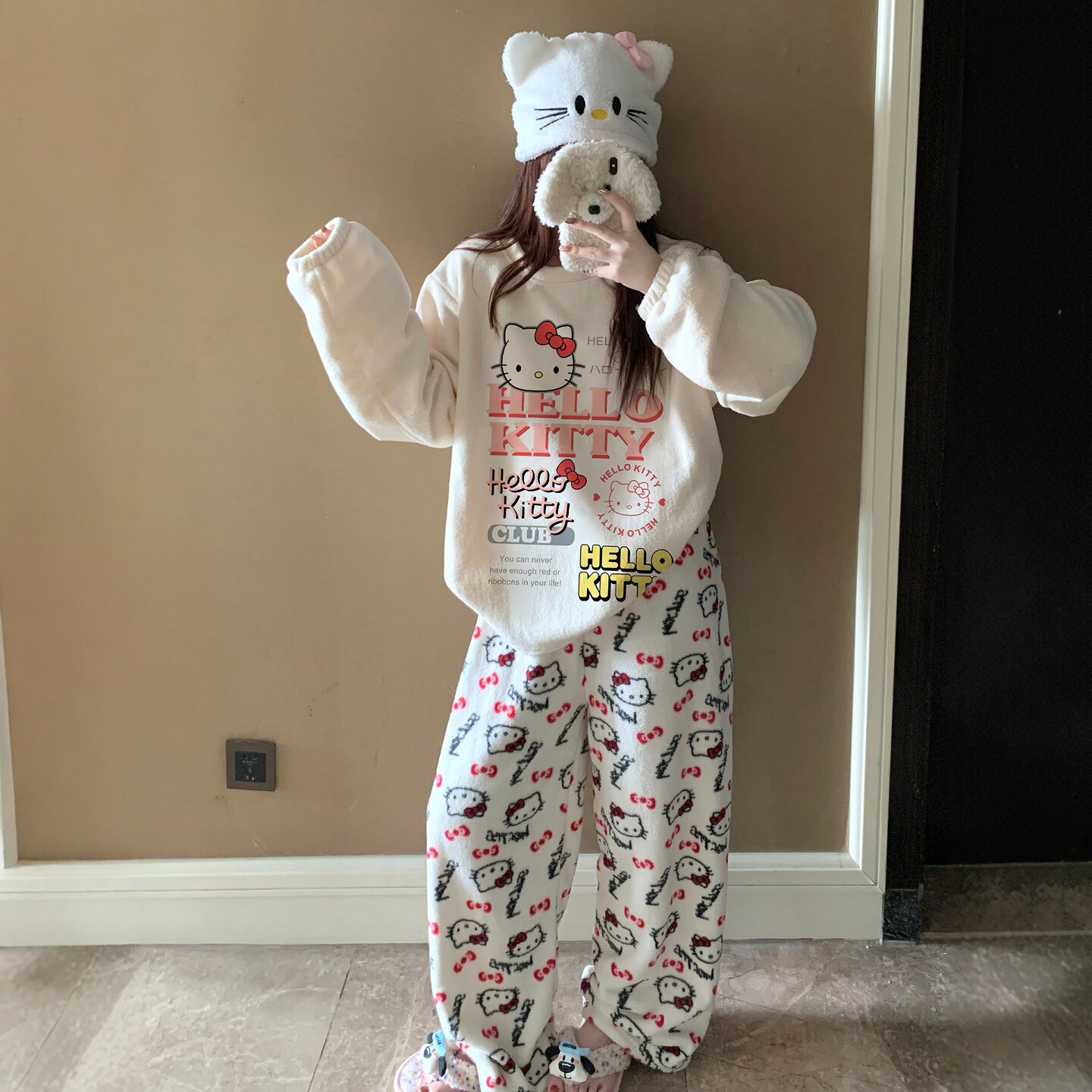 📚 可爱凯蒂猫新款珊瑚绒睡衣女冬季加厚HelloKitty法兰绒家居服套装