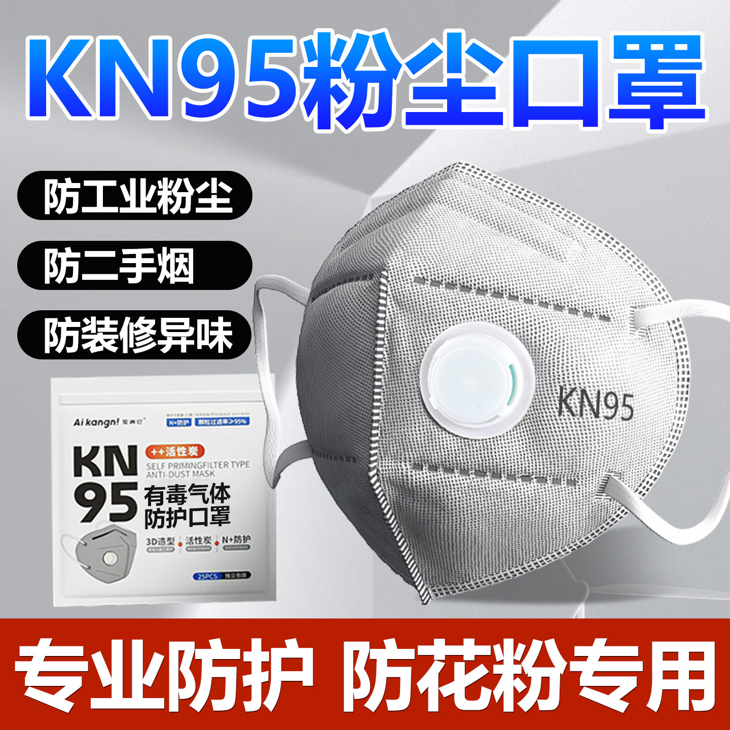 📚 kn95工业级防尘带呼吸阀独立包装专用口罩易呼吸粉尘重度灰尘n100