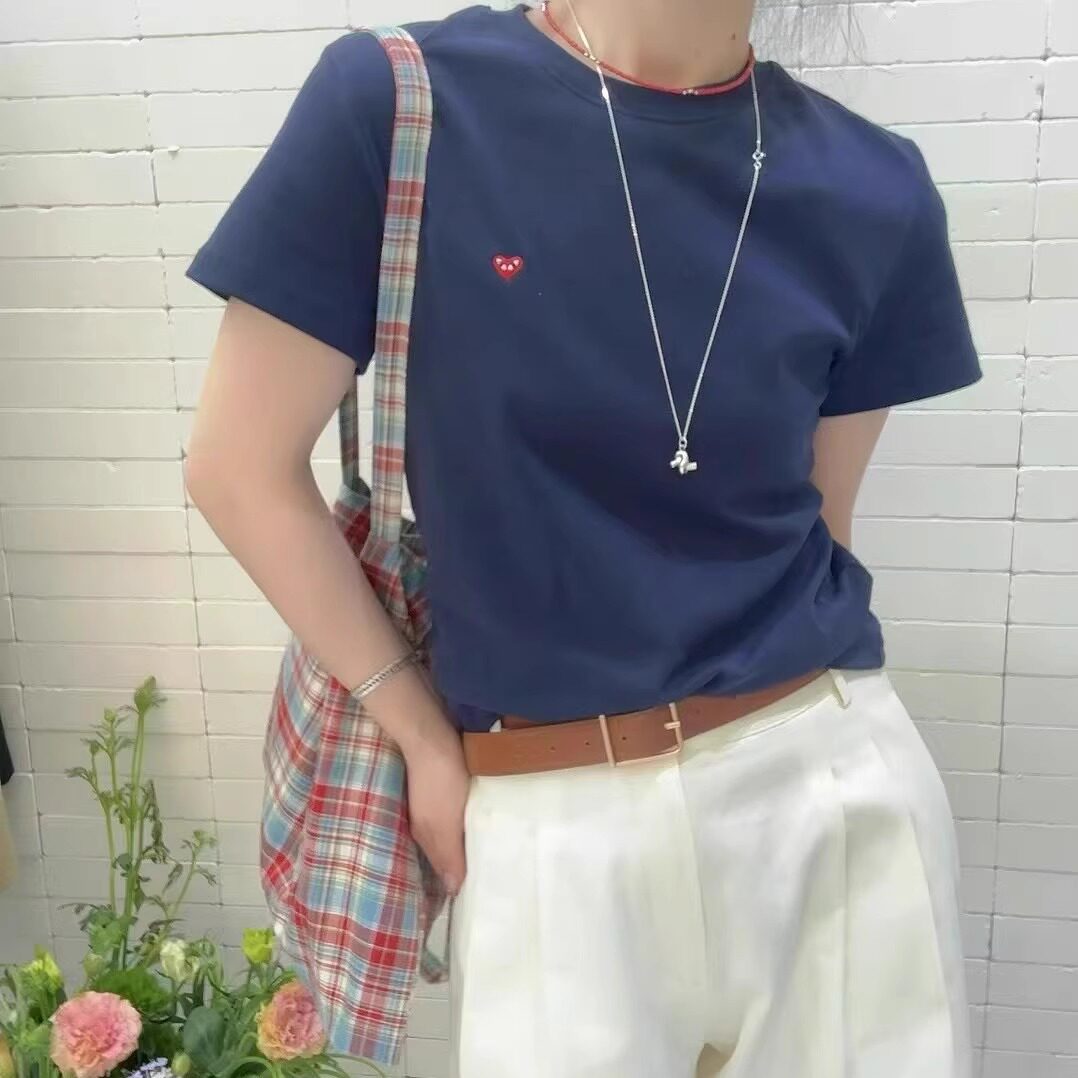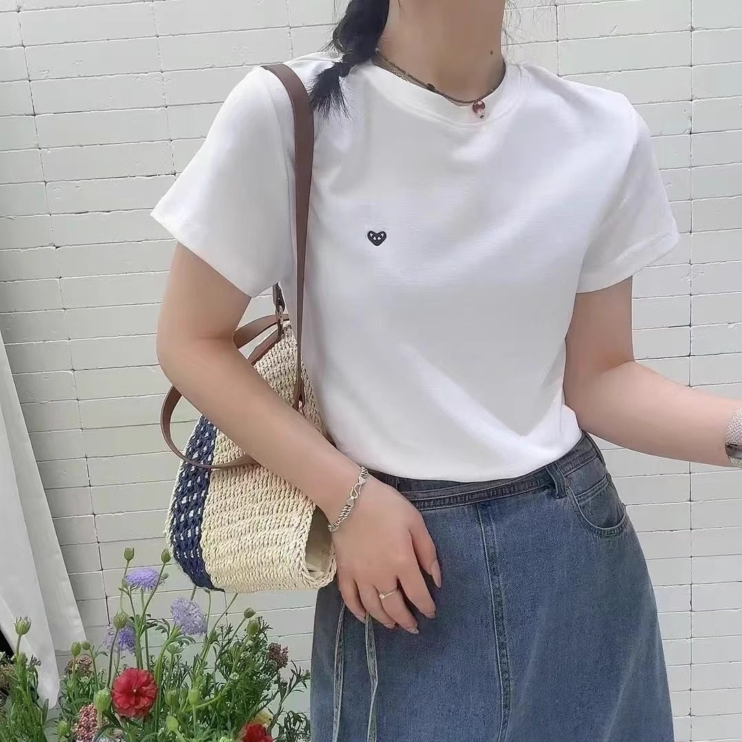📚 JTENGC吉藤 2025夏季新款经典百搭刺绣小标圆领短袖宽松T恤女上衣