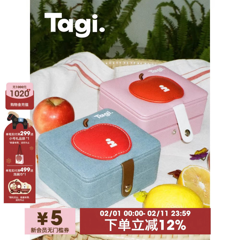 📚 Tagi.苹果压缩饼干创意小众可爱首饰盒便携双层大容量收纳盒