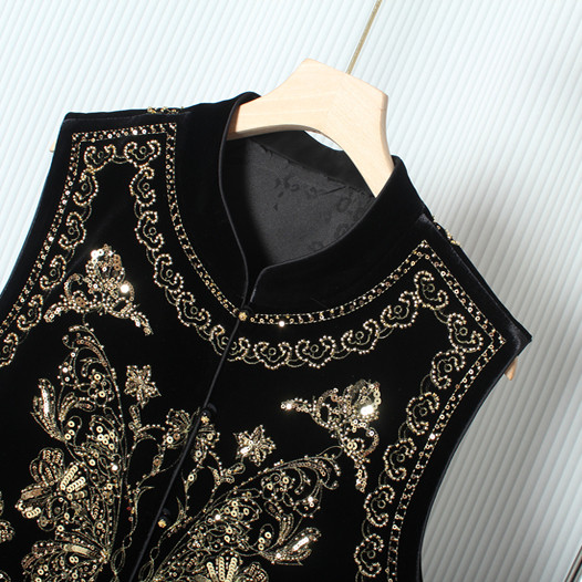 🍁秋季名媛国风重工立领丝绒钉珠蝴蝶亮片马甲,新中式宽松显瘦上衣,券后价209!💃