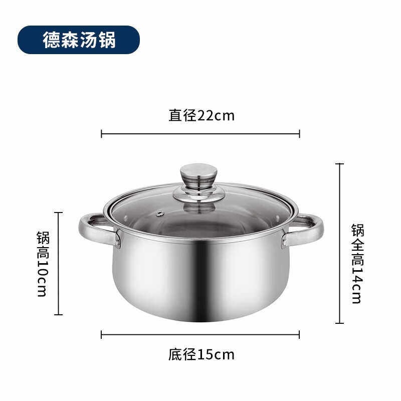 📚 易铂 德森不锈钢炖汤锅燃气灶电磁炉通用YP-8074 22cm
