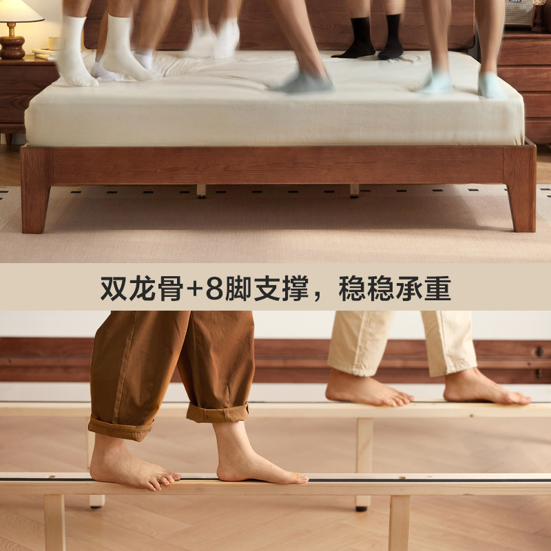 📚 林氏家居北欧1米5全实木床胡桃木色橡木双人大床2024新款林氏木业