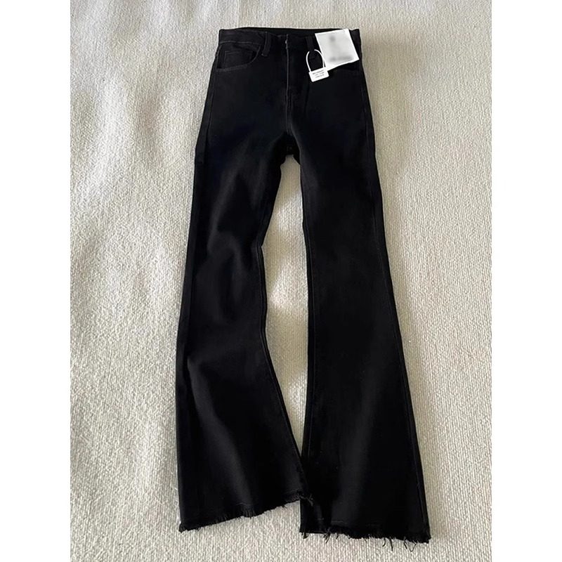 📚 黑色窄版毛边微喇牛仔裤男春秋美式cleanfit高腰修身显瘦弯刀裤子