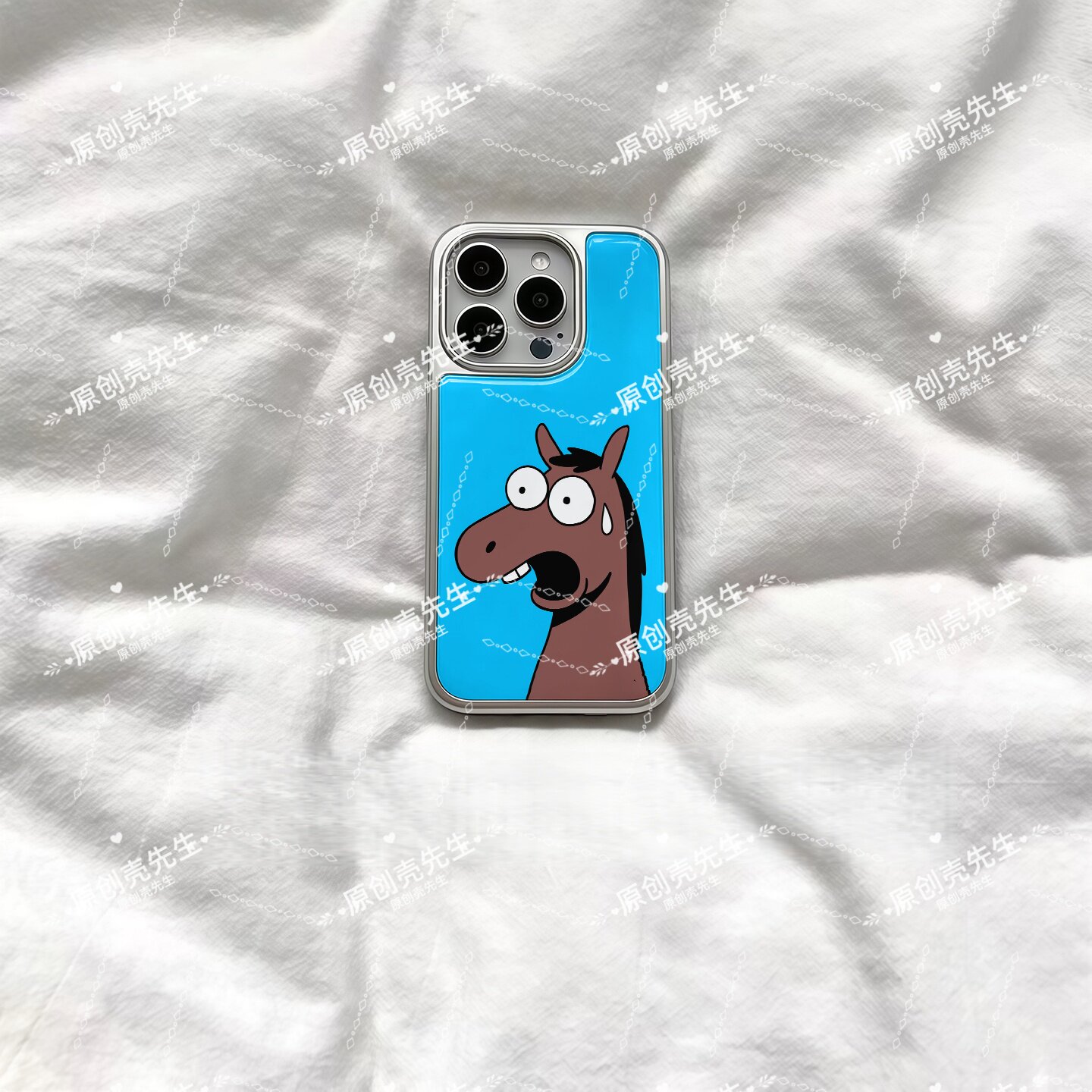 📚 ins原创个性慌张小马电镀银磁吸适用苹果iPhone17promax手机壳1615pro小米1415Pro华为mate60p70三星S23防摔