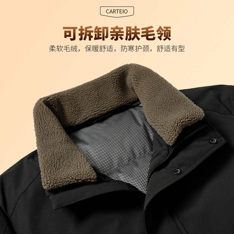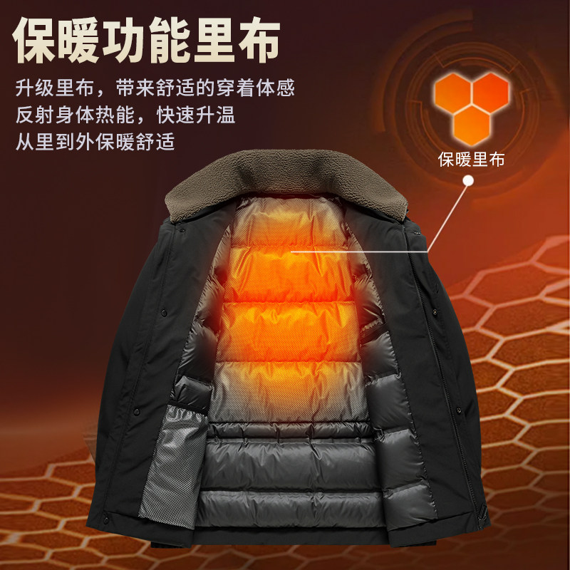 📚 新款爸爸冬装羽绒服中年男士加厚保暖冬季羊毛翻领外套中老年男装