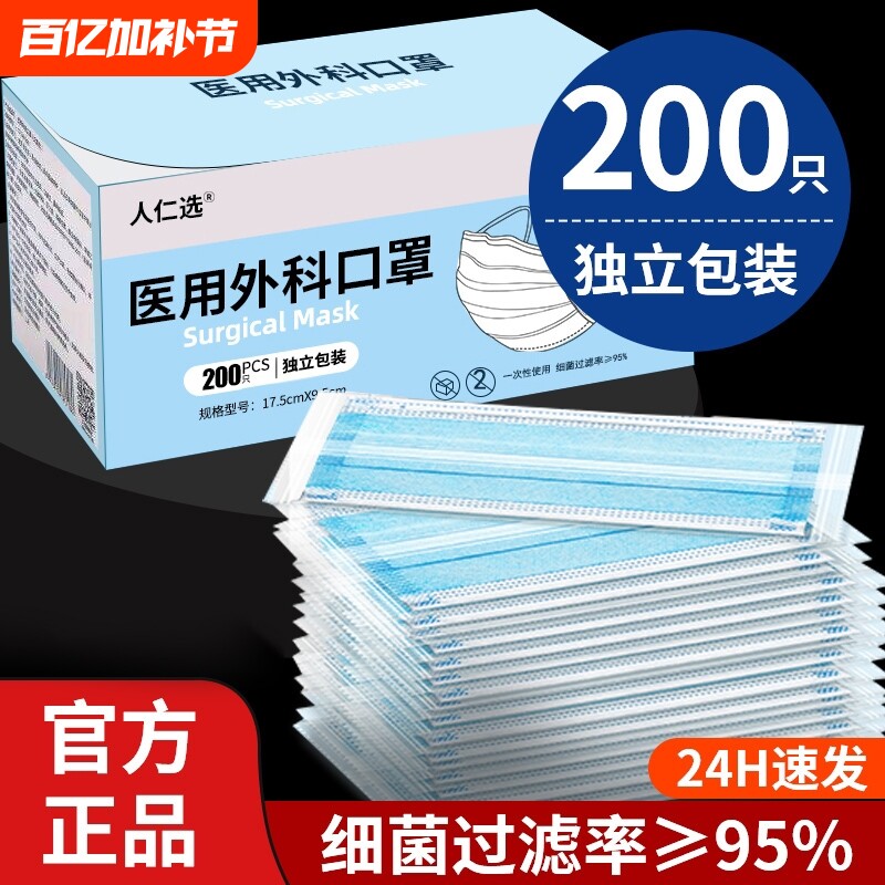 📚 医用外科口罩疗一次性医正规三层成人春夏薄独立包装透气正品医药
