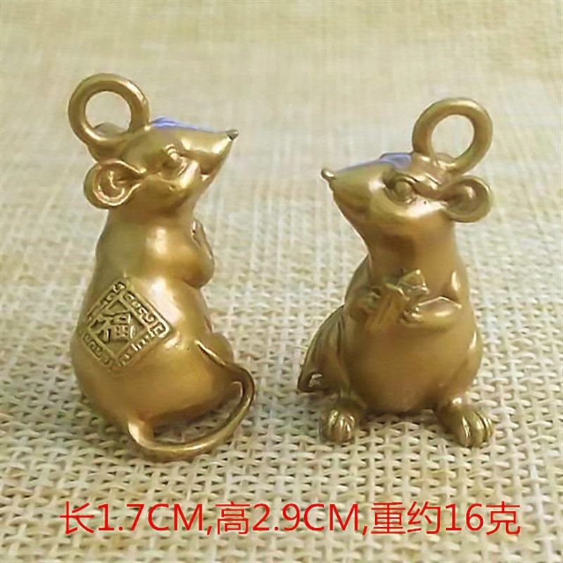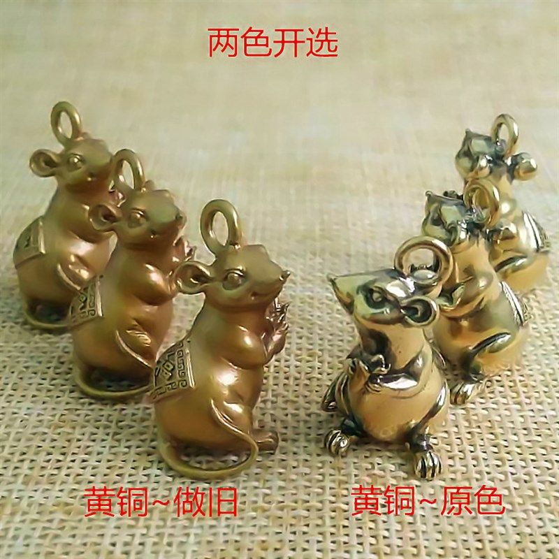 📚 鼠年本命年黄铜老鼠车钥匙扣招财鼠挂件十二生肖银鼠手机吊坠男女