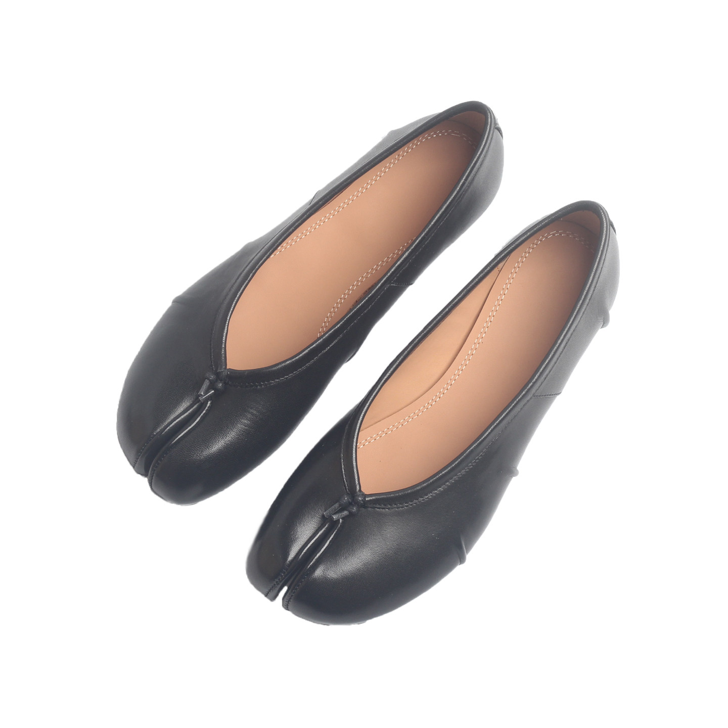 📚 水洗马皮分趾鞋女2026春款真皮平底tabi猪蹄鞋褶皱一脚蹬芭蕾舞鞋