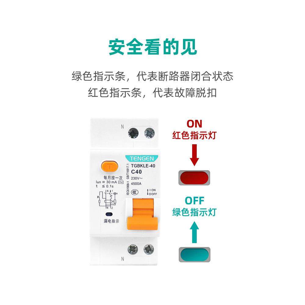 📚 天正TENGEN漏电开关漏保TGBKLE-40空气开关漏电保护 1P+N小型家用