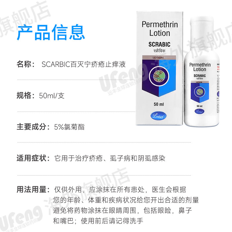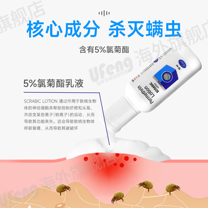 📚 进口百灭宁疥疮止痒液5%氯菊酯疥螨疥虫头虱体虱阴虱感染疥疮60ml