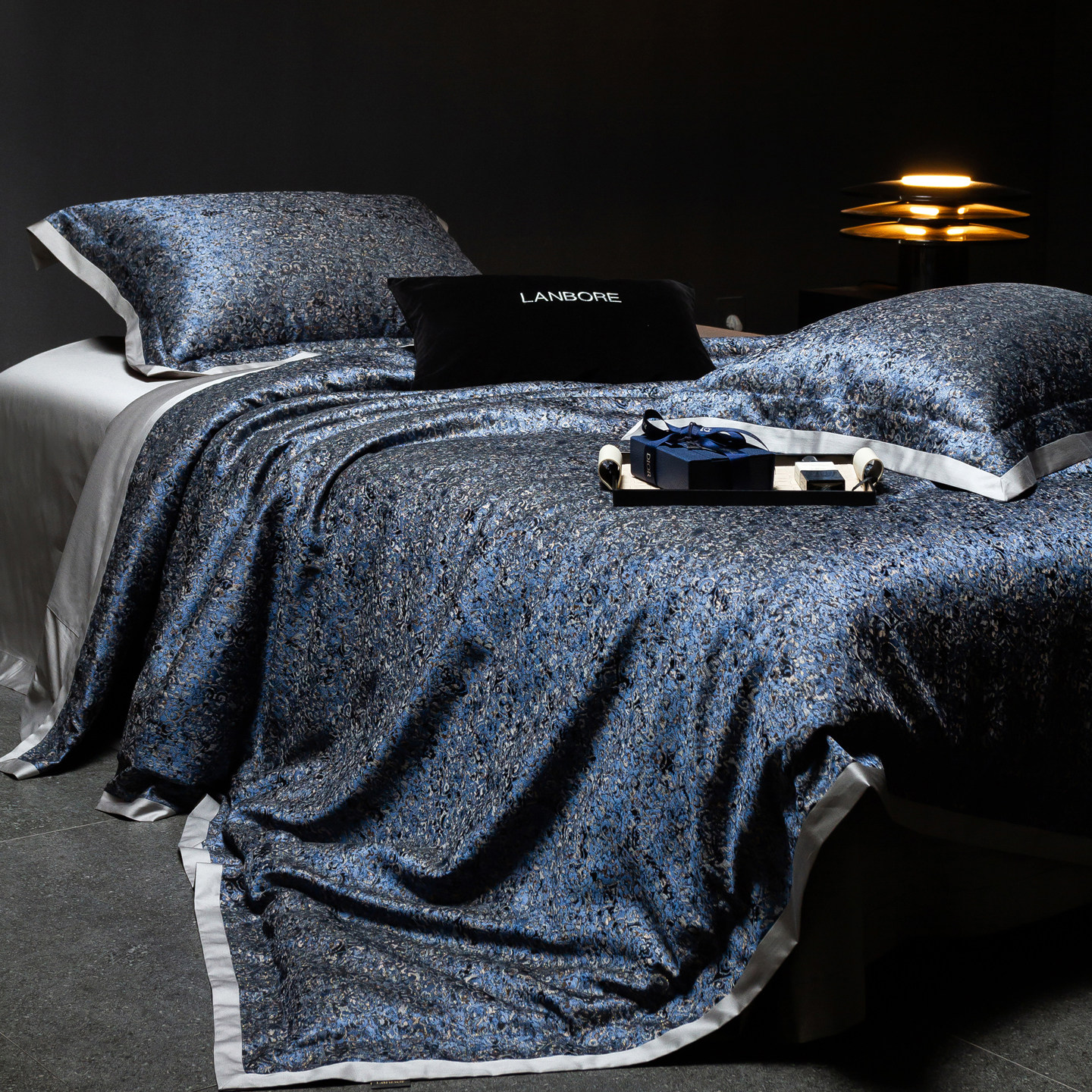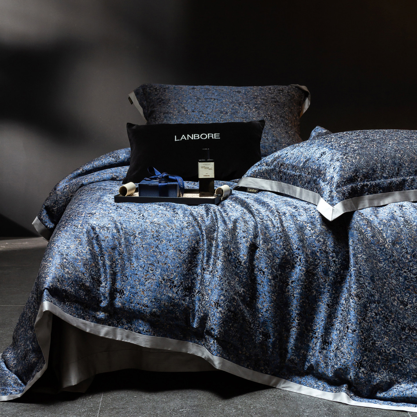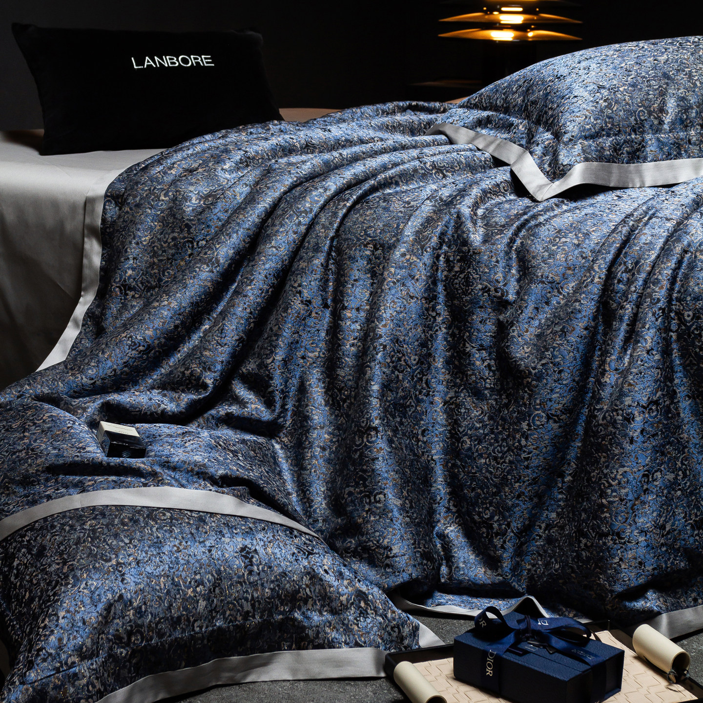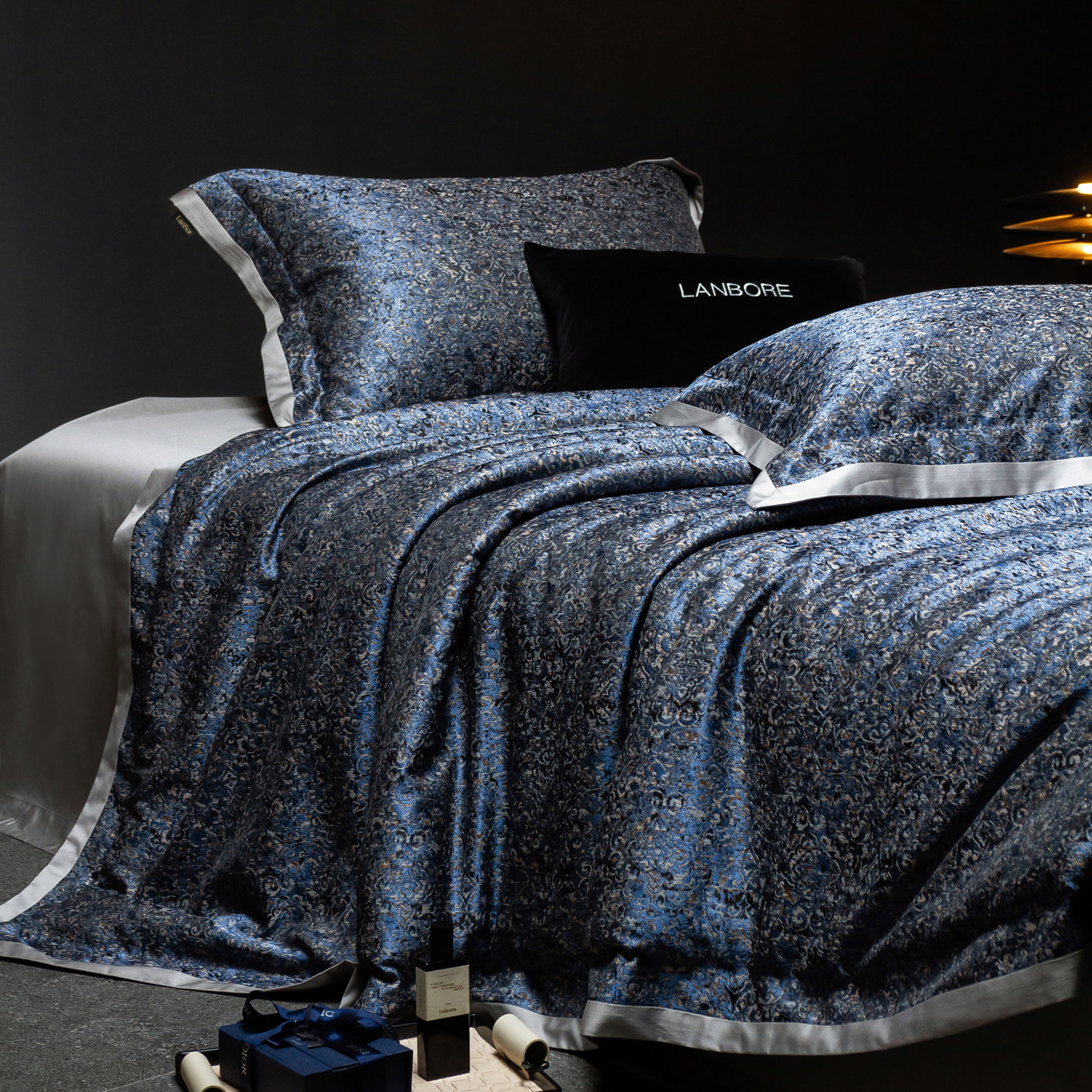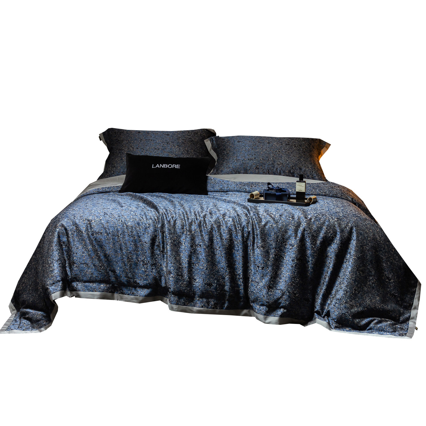 📚 轻奢高级感140S长绒棉四件套蓝色高精密提花被套床单纯棉别墅床品
