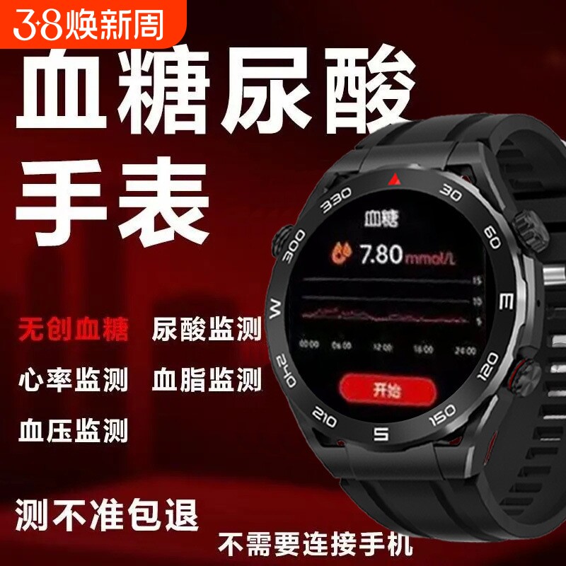 📚 全自动无创测血糖手表体温尿酸血压血氧心率睡眠运动监测通话手环