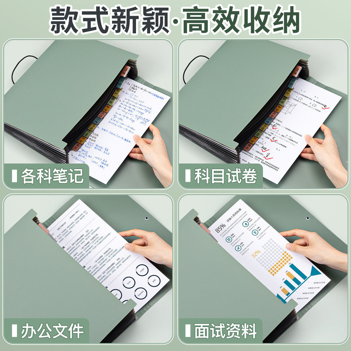 📚 试卷收纳袋高中生大容量风琴包文件收纳袋多层风琴文件夹初中生立式手提文件袋伸缩卷子收纳袋分类夹桌面