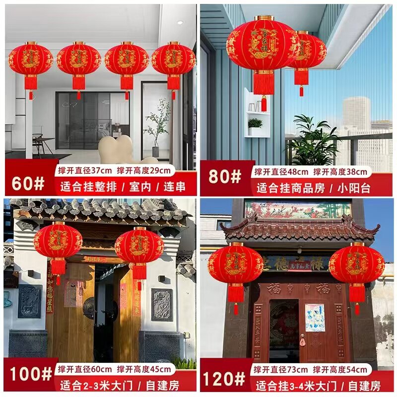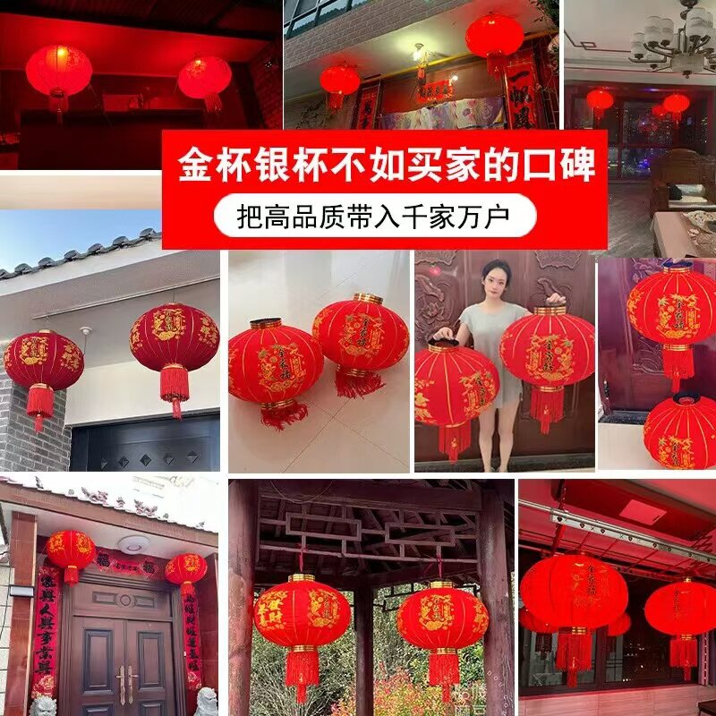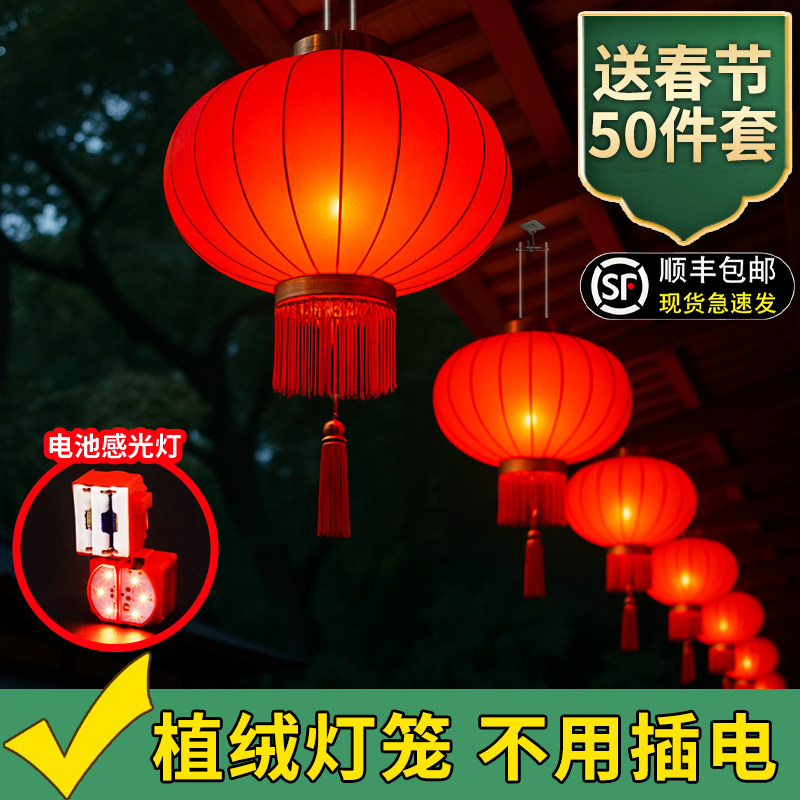 📚 过年2026新款大红灯笼一对福满阳台植绒挂饰电池绒布插电大气感光