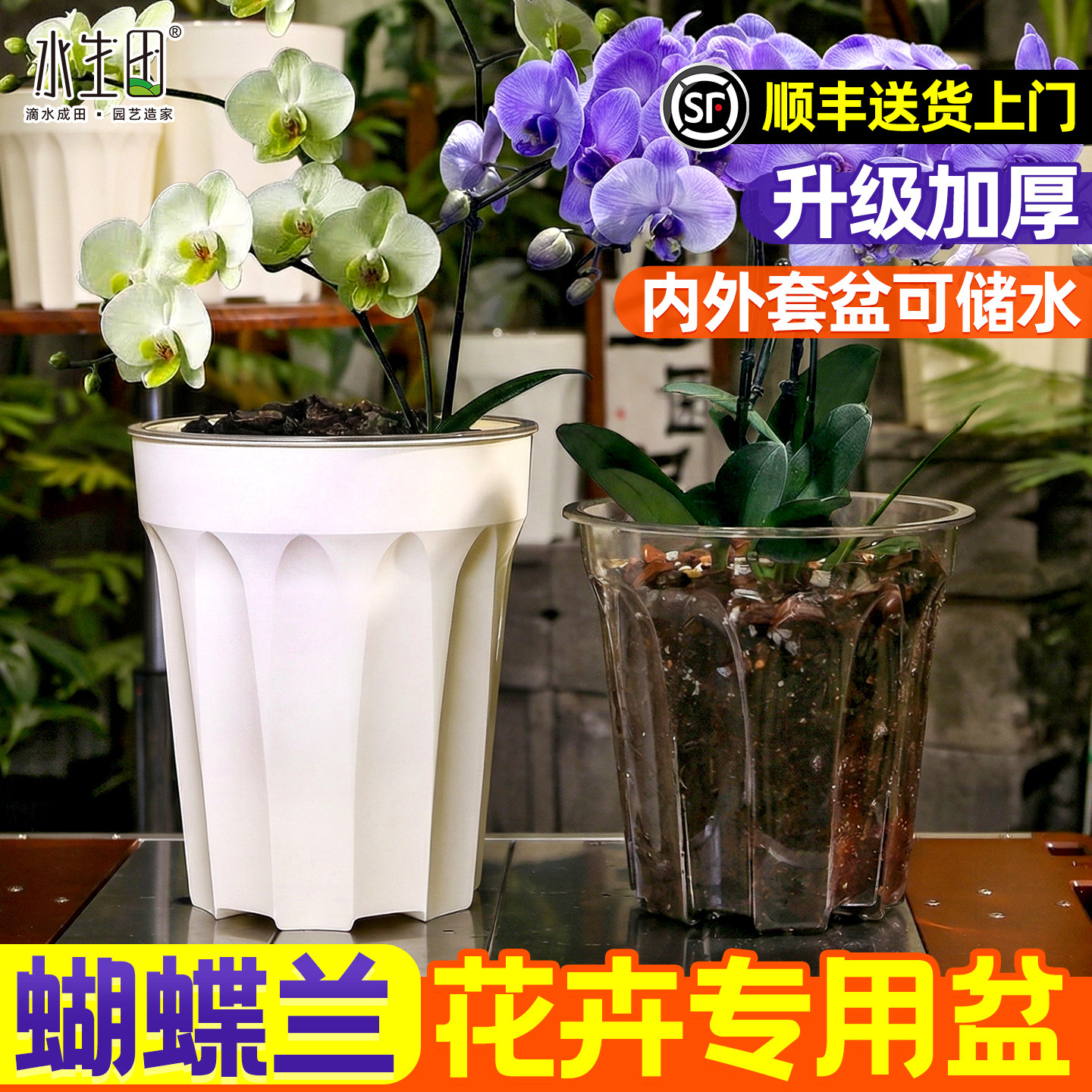 📚 蝴蝶兰花盆专家用塑料套盆树脂龟背竹热植自吸水加厚耐用控根透气