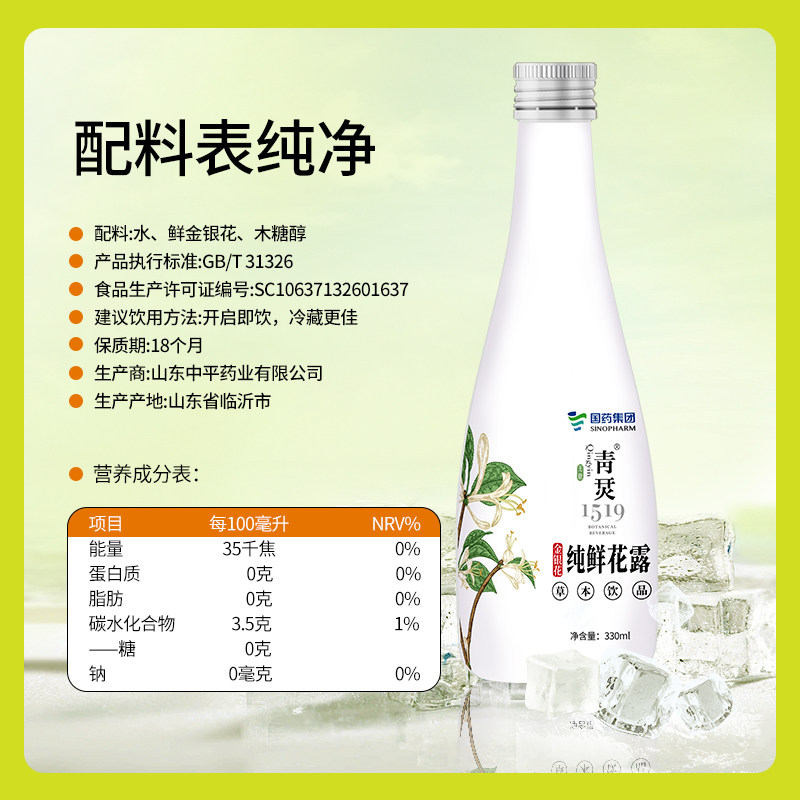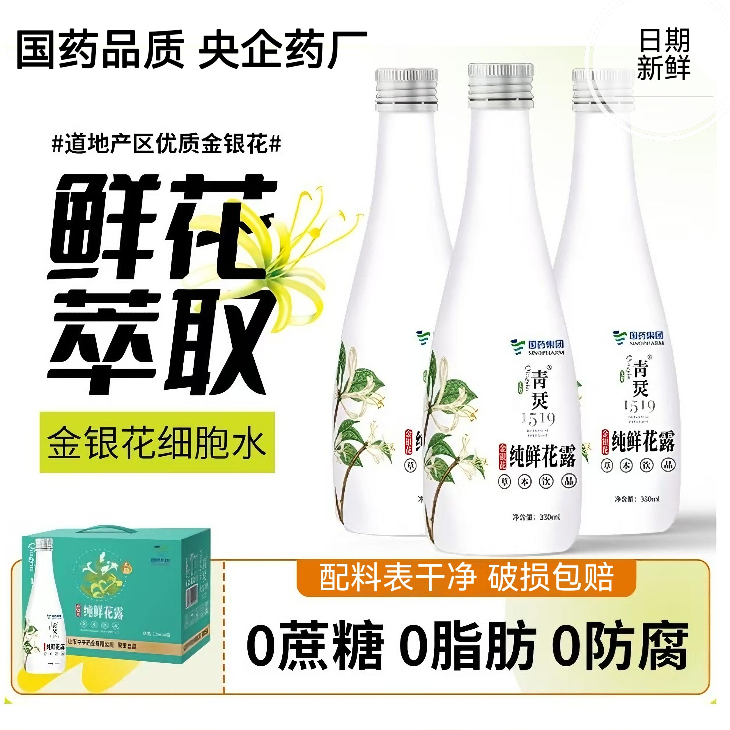 📚 国药集团金银纯鲜花露无糖降去火熬夜养颜水金银花露草本植物饮料