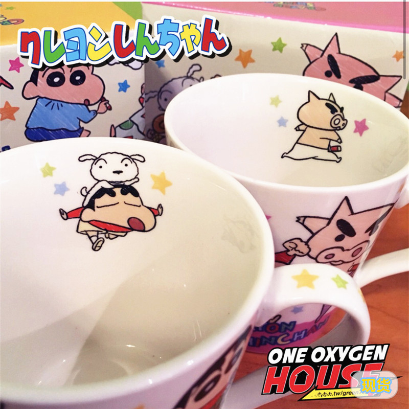 📚 现货日本限定正版蜡笔小新水杯陶瓷杯马克杯睡衣小新白狗咖啡杯子