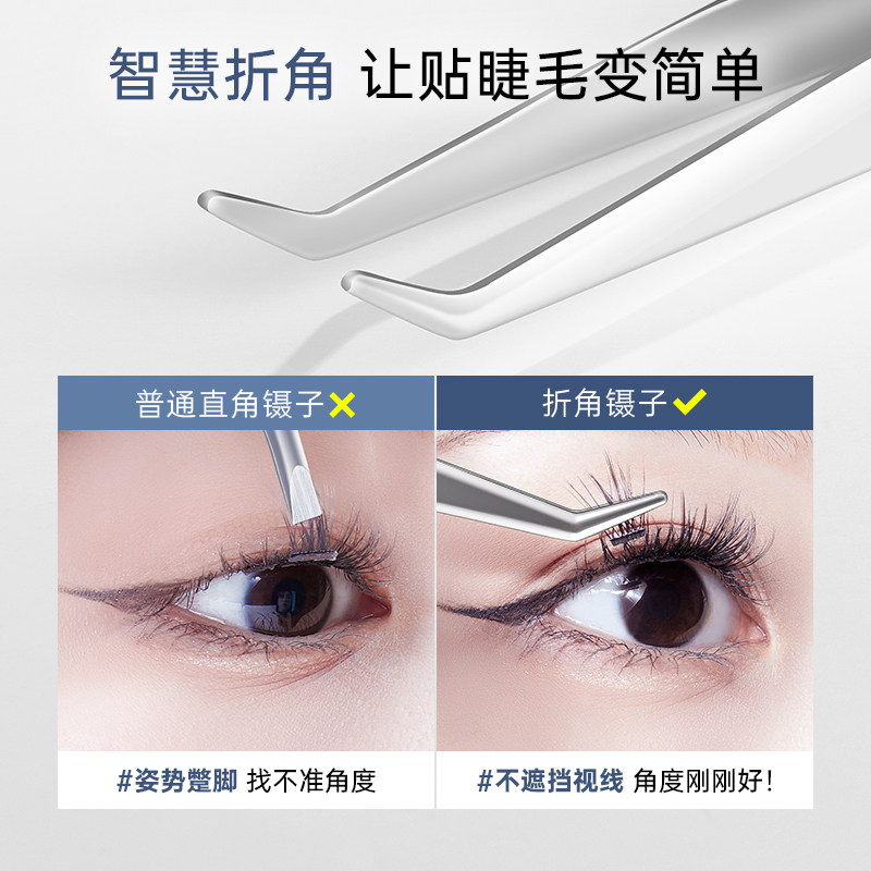 📚 粘贴假睫毛专用镊子新手圆头高精密金羽夹子弯头美睫师嫁接种工具