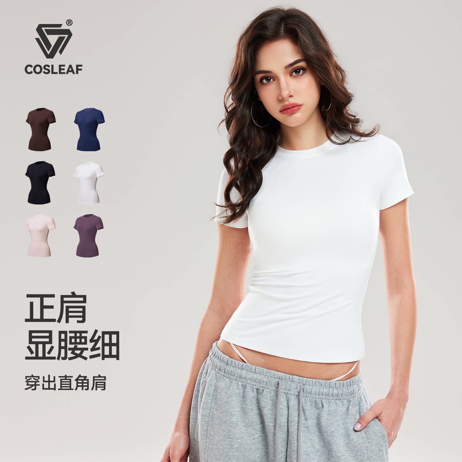 📚 科里芙运动T恤女夏季圆领短袖肯豆风修身正肩高弹显瘦休闲健身衣