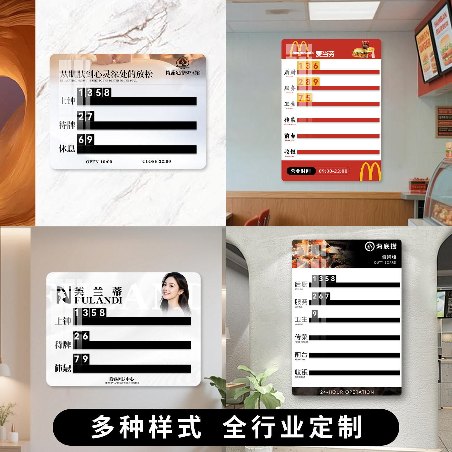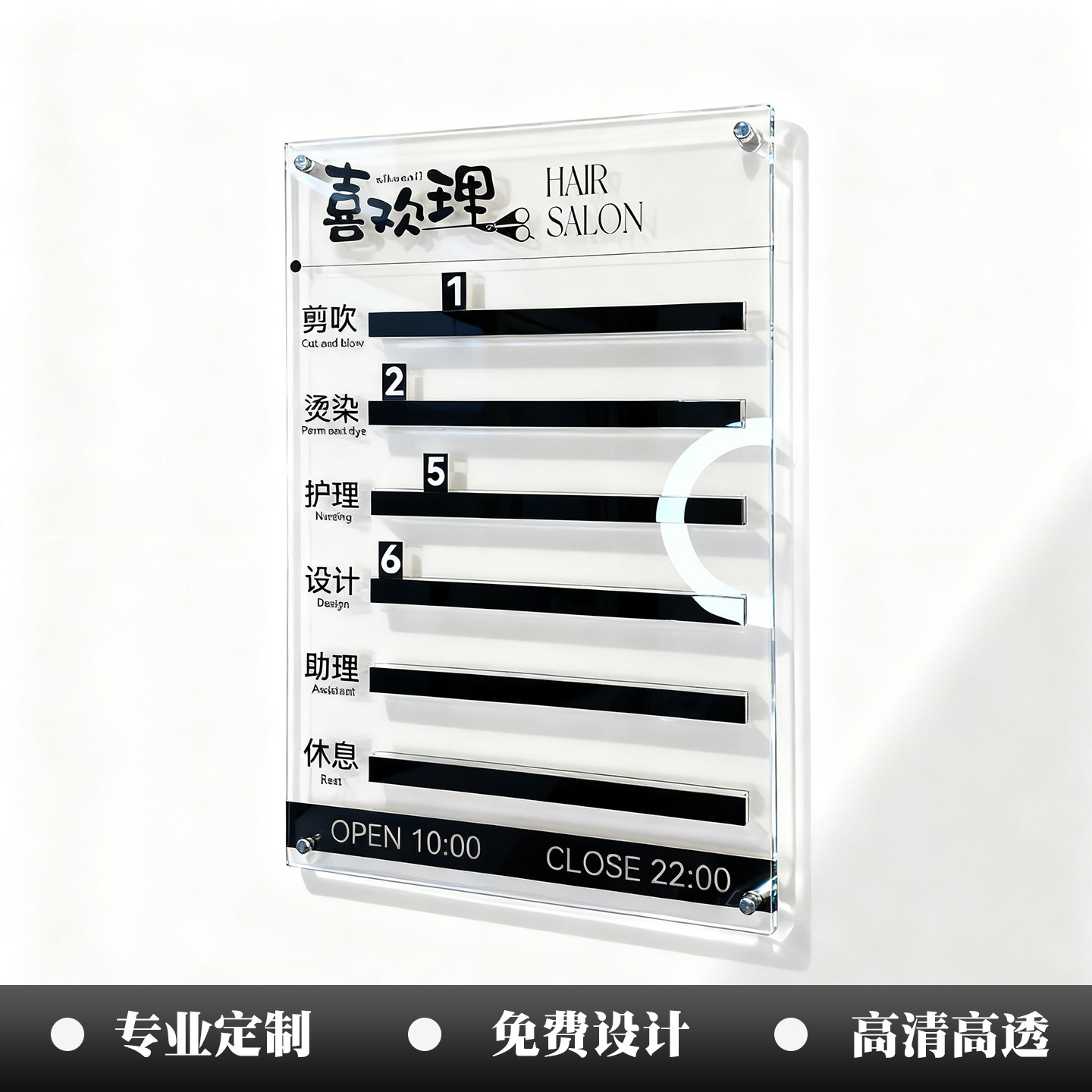 📚 美发店工作流水牌亚克力发廊美容院洗浴足疗店美业轮工理发店轮岗牌订制轮值美甲店值班定做去向牌上钟牌定制